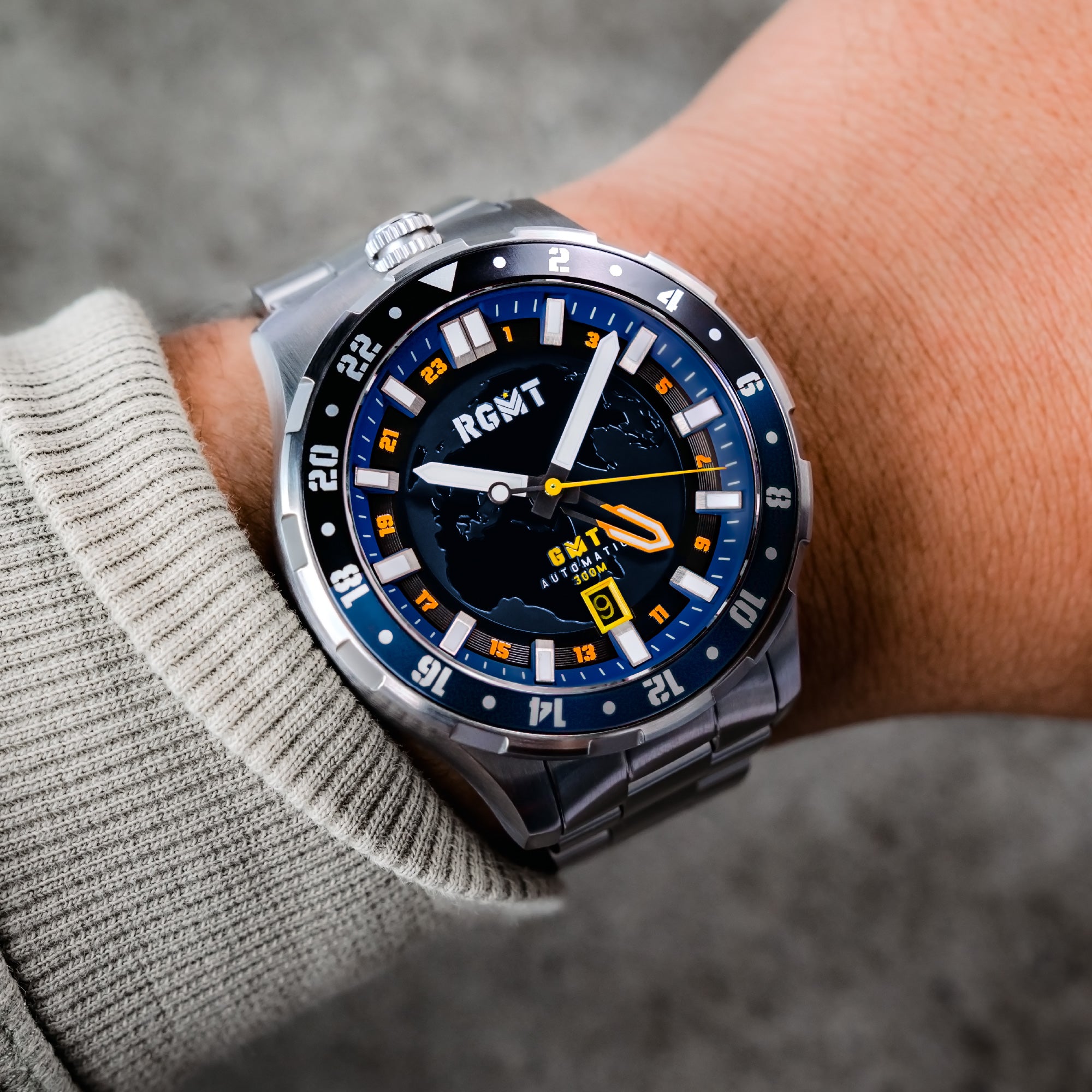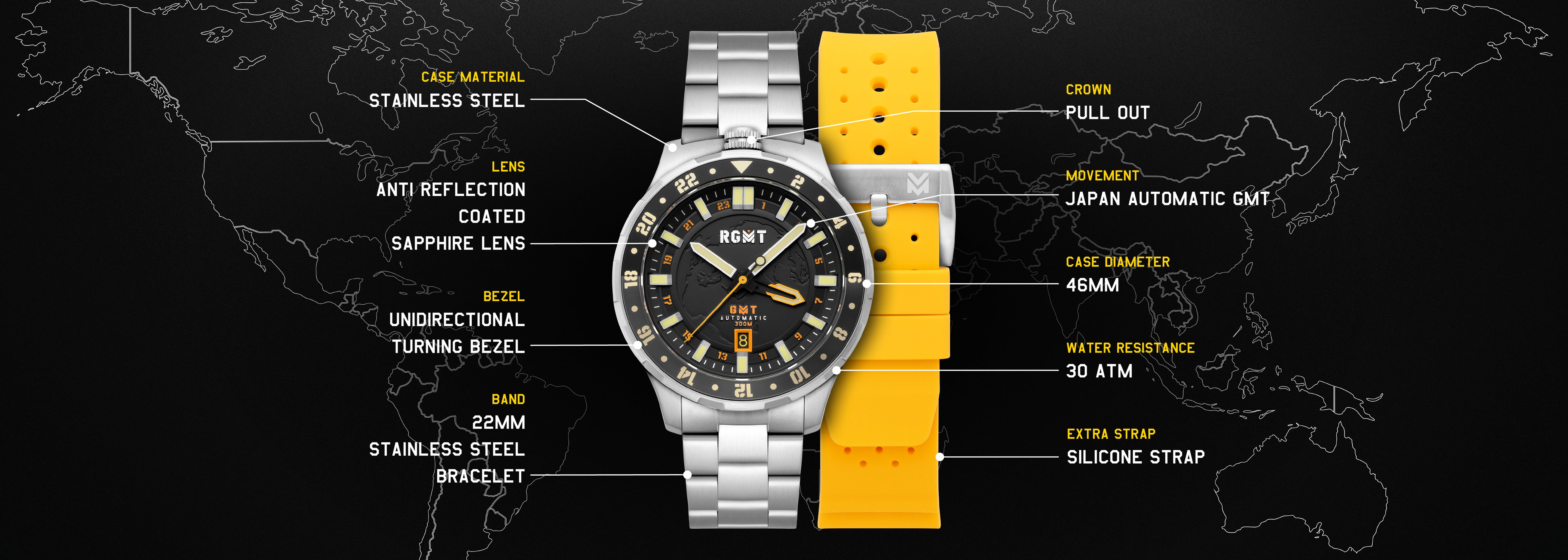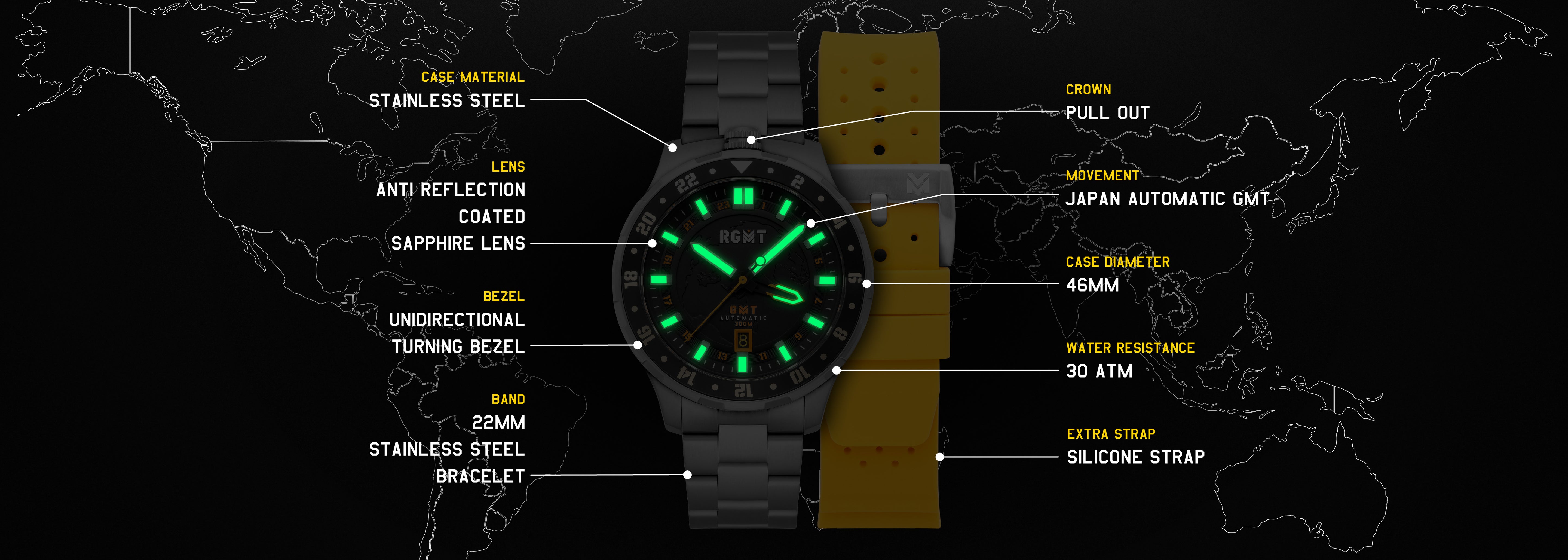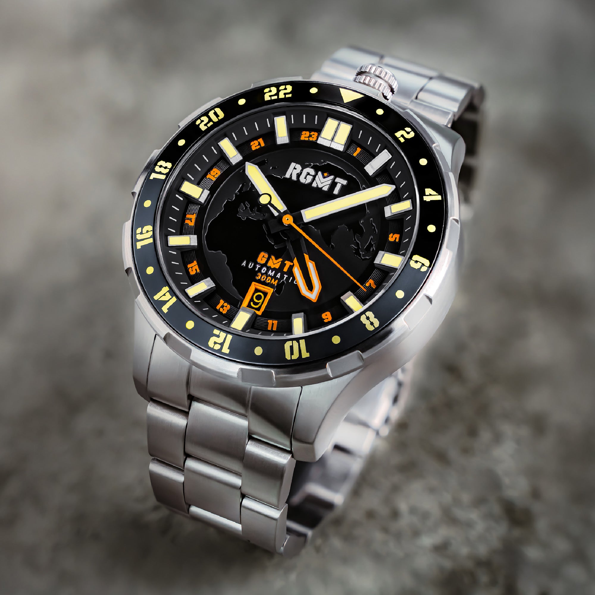 Introducing the GLOBEMASTER GMT AUTOMATIC — engineered for the world traveler, designed for dominance across continents. From combat zones to concrete jungles, missions to milestones — this is your command center on the wrist.