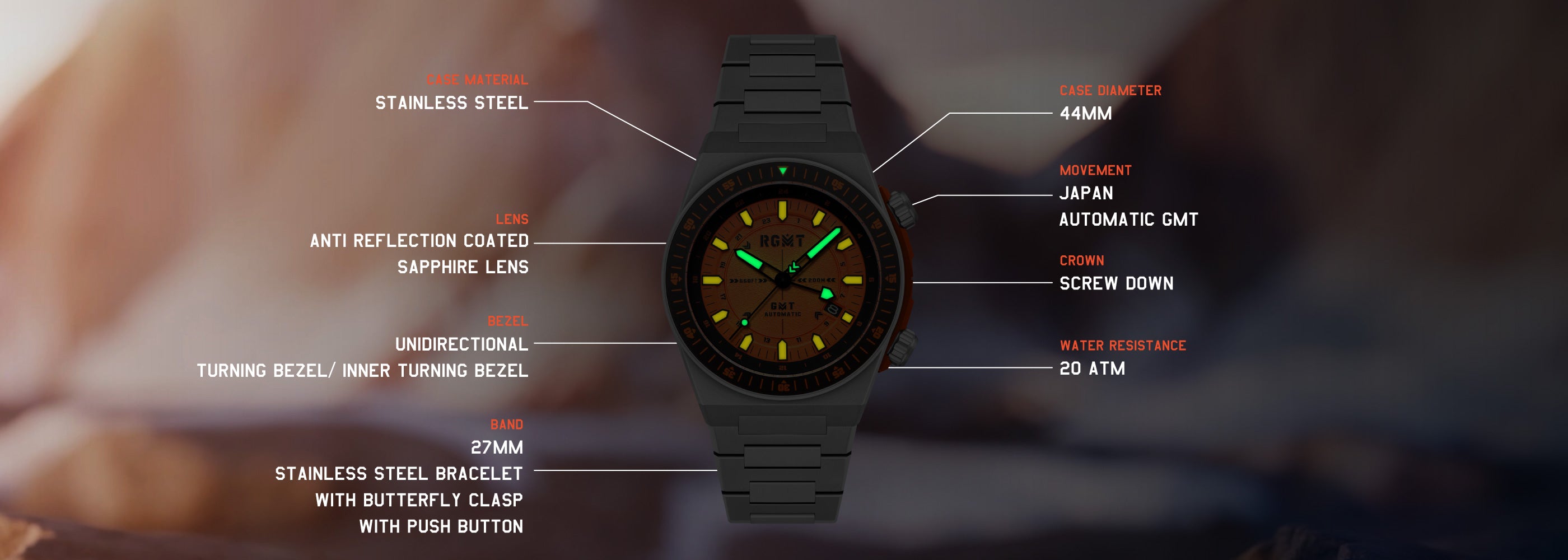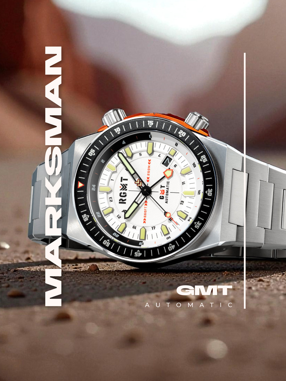 In a world where precision determines survival, the RGMT Marksman GMT Automatic stands ready to deliver. Engineered with a dual-time GMT function, this tactical timepiece ensures accuracy across borders, terrains, and time zones — a true companion for those always on the move.